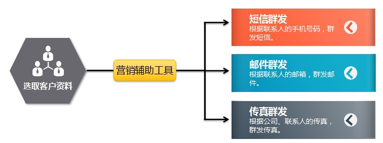 展之通带短信、邮件、传真等群发功能,并与CRM无缝对接,选中经电话营销筛选精准处理后的客户资料一键群发,使用效果更佳。