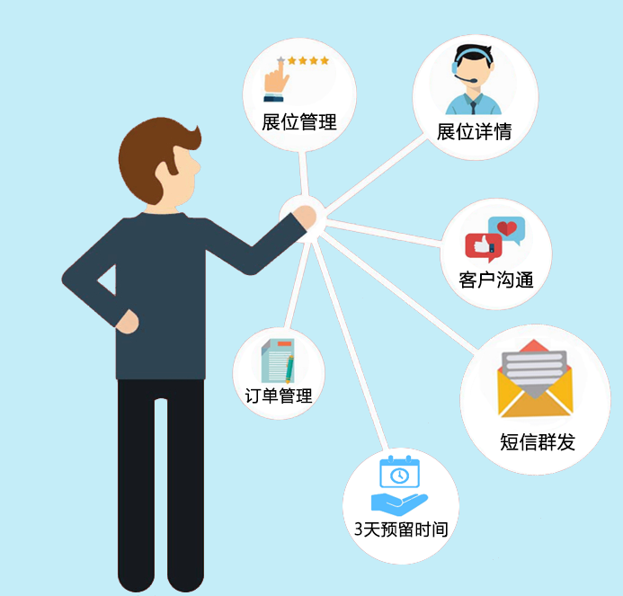 业务员直接在动态展位图中进行展位预订操作,而不需要问管理人员位置是否可以预定。预定成功后,展位图会自动更新到已预订状态,避免多名销售人员业务冲突,提高工作效率。