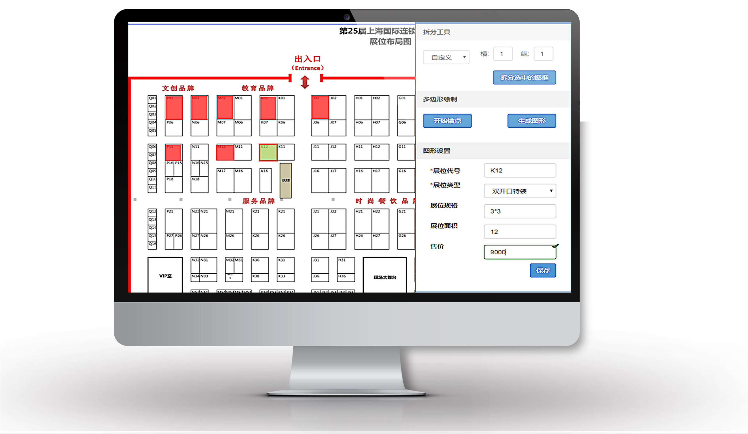 只需鼠标进行选中就可以轻松完成展位初始化工作,也可以方便操作展位拆分和合并等工作。