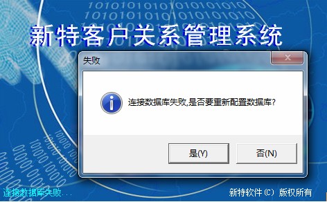 问题:客户端电脑安装完新特展览客户关系管理系统,打开提示数据库连接失败。如图: