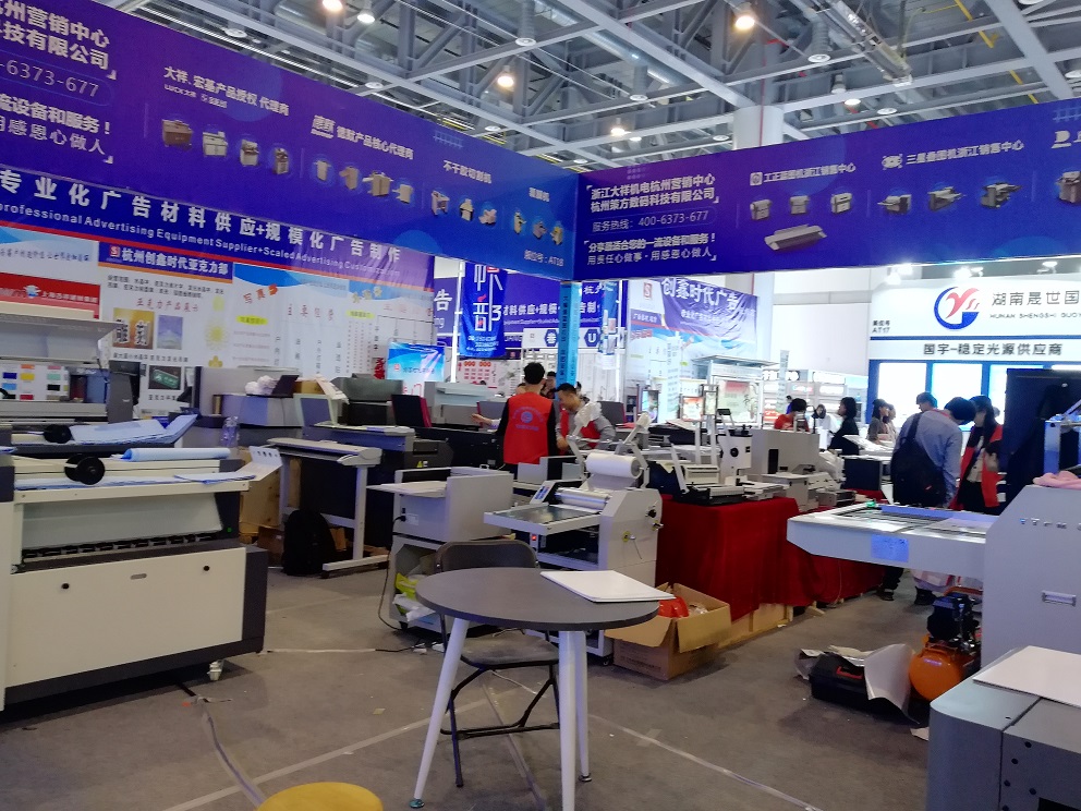 2019第26届杭州新华广印展在杭州国际博览中心1楼AB两馆举行,A馆以广告作品宣传为主,B馆以印刷设备展示为主,云峰是展会第一天上午十点多到场,整体感觉人气较旺,大部分摊位上都有商务沟通,但同时,由于广告印刷行业特性,整个场馆内气味呛人、声音嘈杂,让人无法久留。